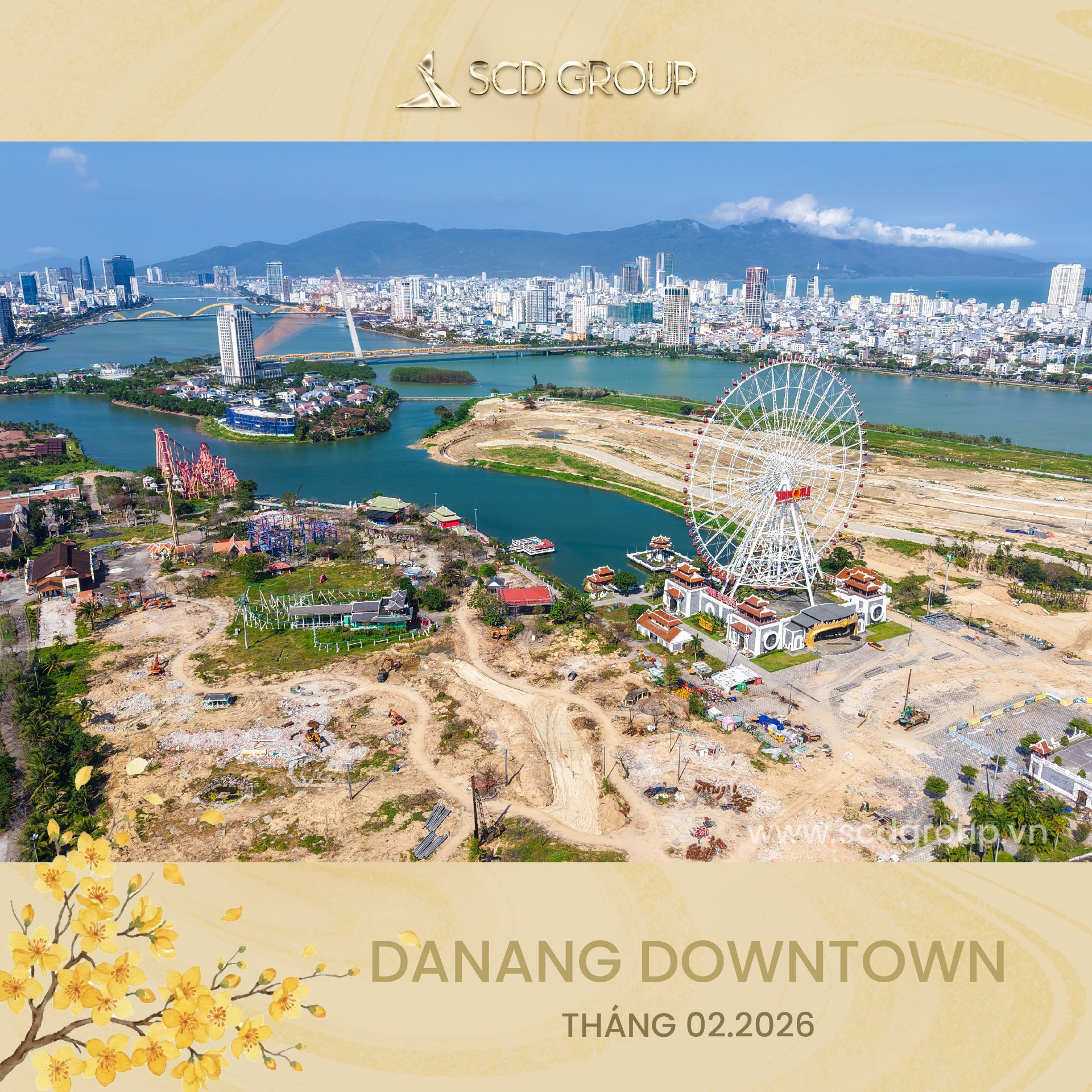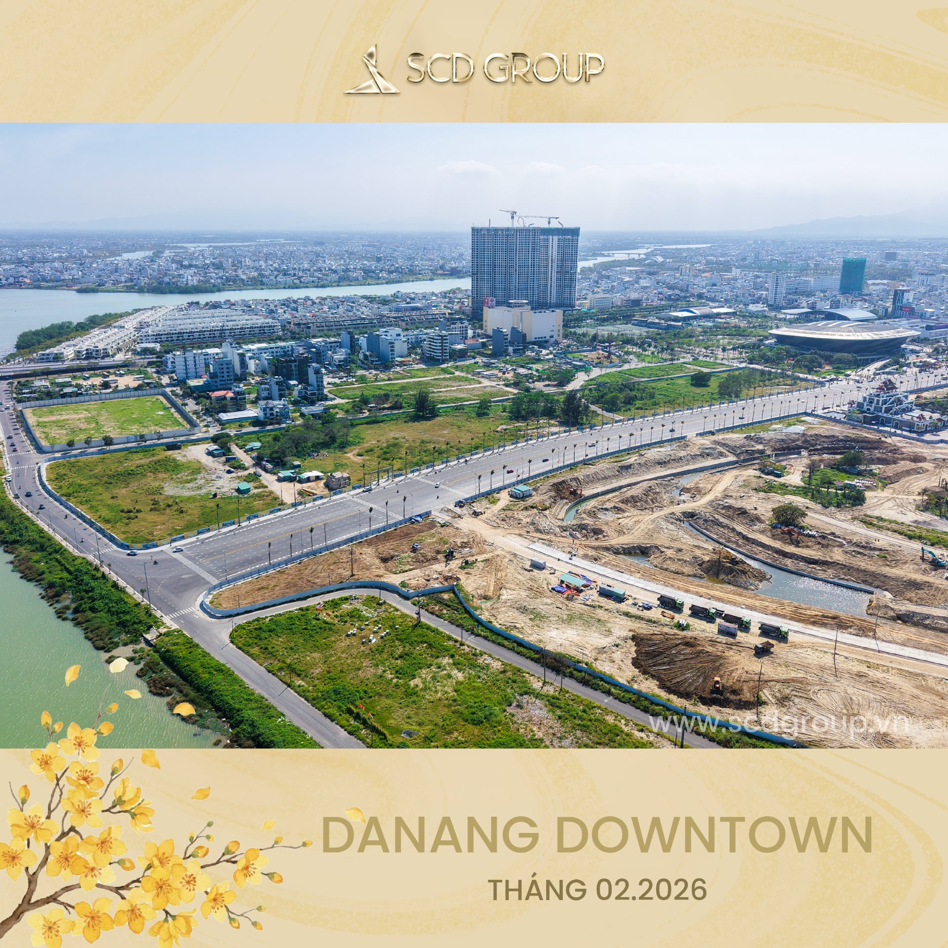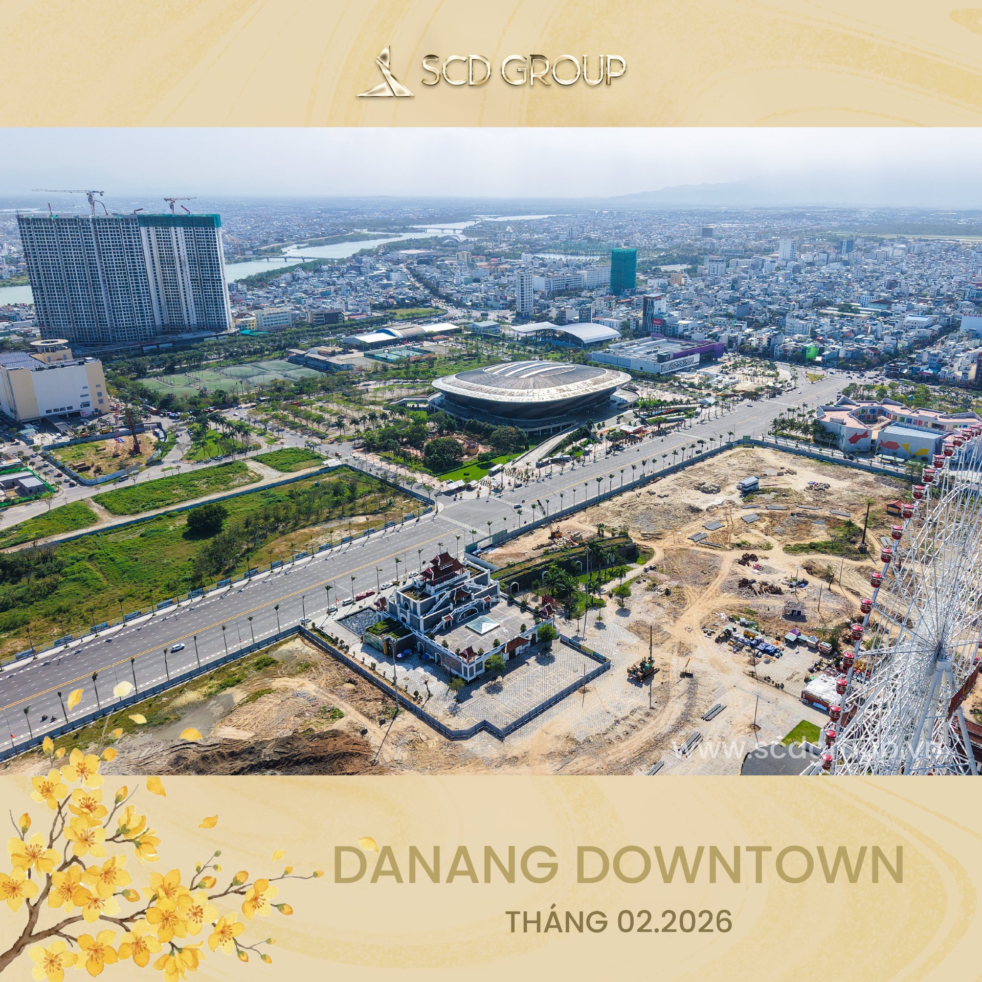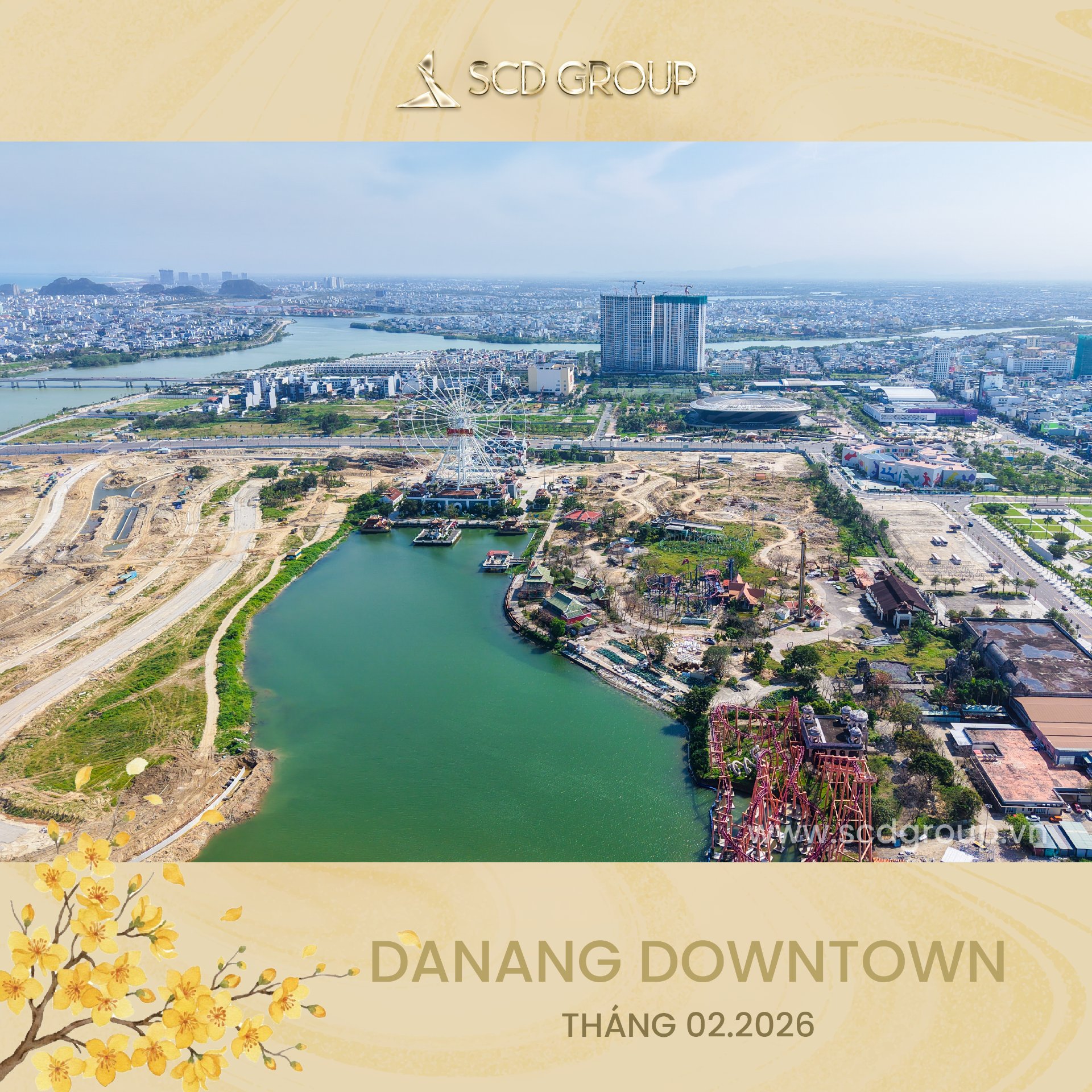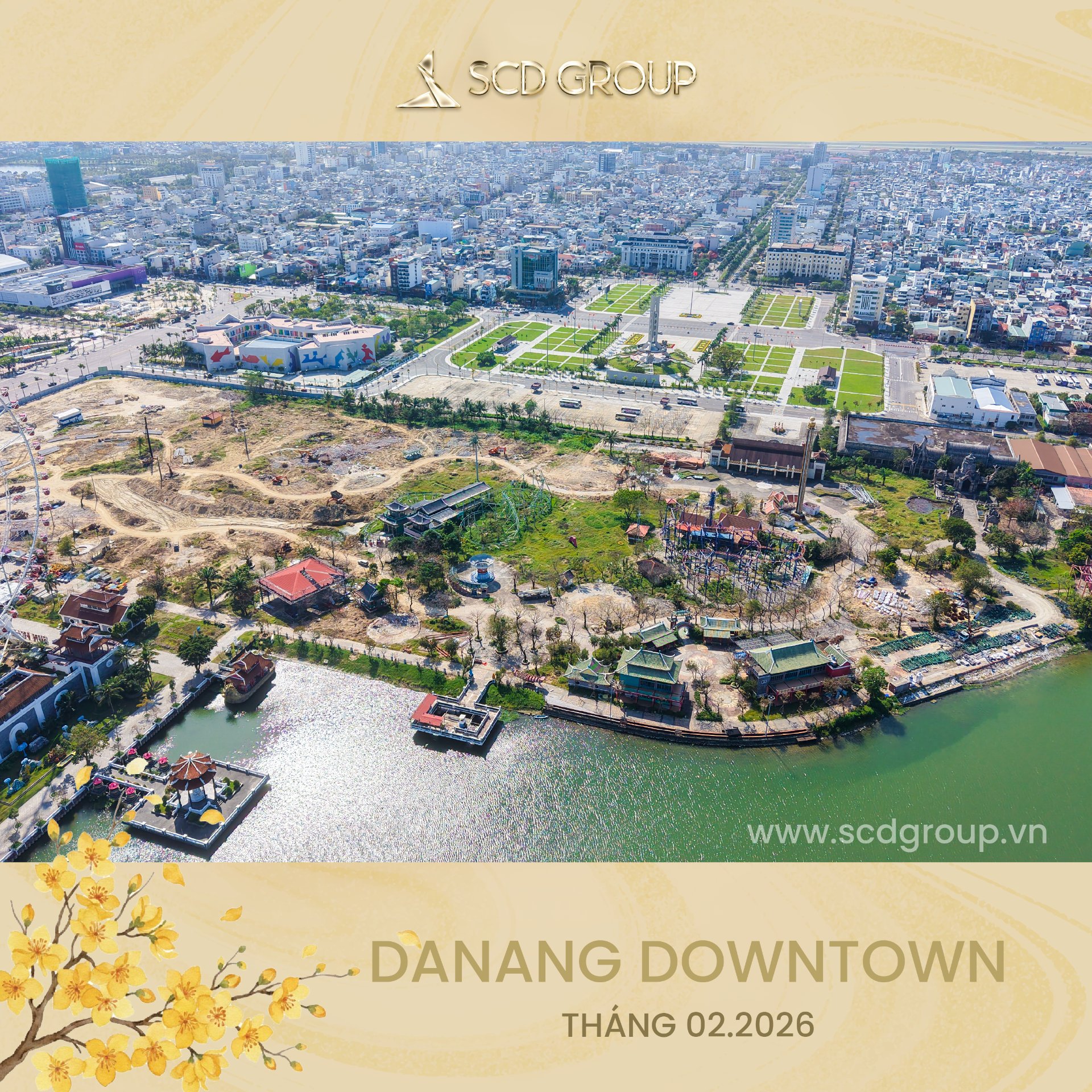 Siêu tổ hợp Da Nang Downtown quy mô 76,92ha, tọa lạc tại phường Hòa Cường (Công viên châu Á cũ), tổng mức đầu tư khoảng 79.790 tỷ đồng, gồm khu công viên văn hóa vui chơi giải trí, nhà hát, khu phố thương mại ven sông sầm uất, công viên xanh ôm trọn mặt nước sông Hàn và tòa tháp biểu tượng 69 tầng cao nhất miền Trung… Được ví như thành phố thu nhỏ giữa lòng “Thành phố sông Hàn” – Da Nang Downtown là nơi ánh đèn hội tụ, văn hóa thăng hoa và nhịp sống sôi động đêm ngày.