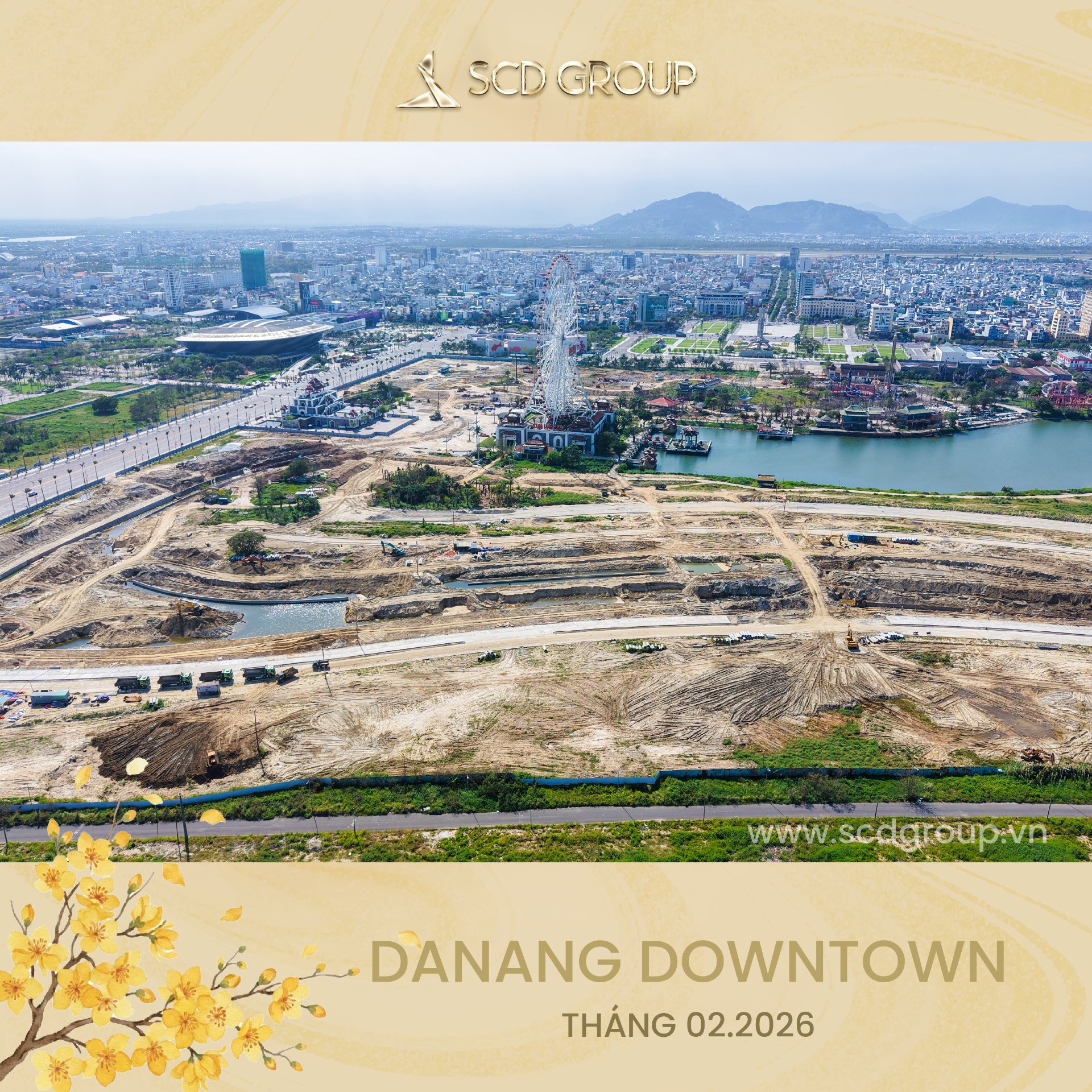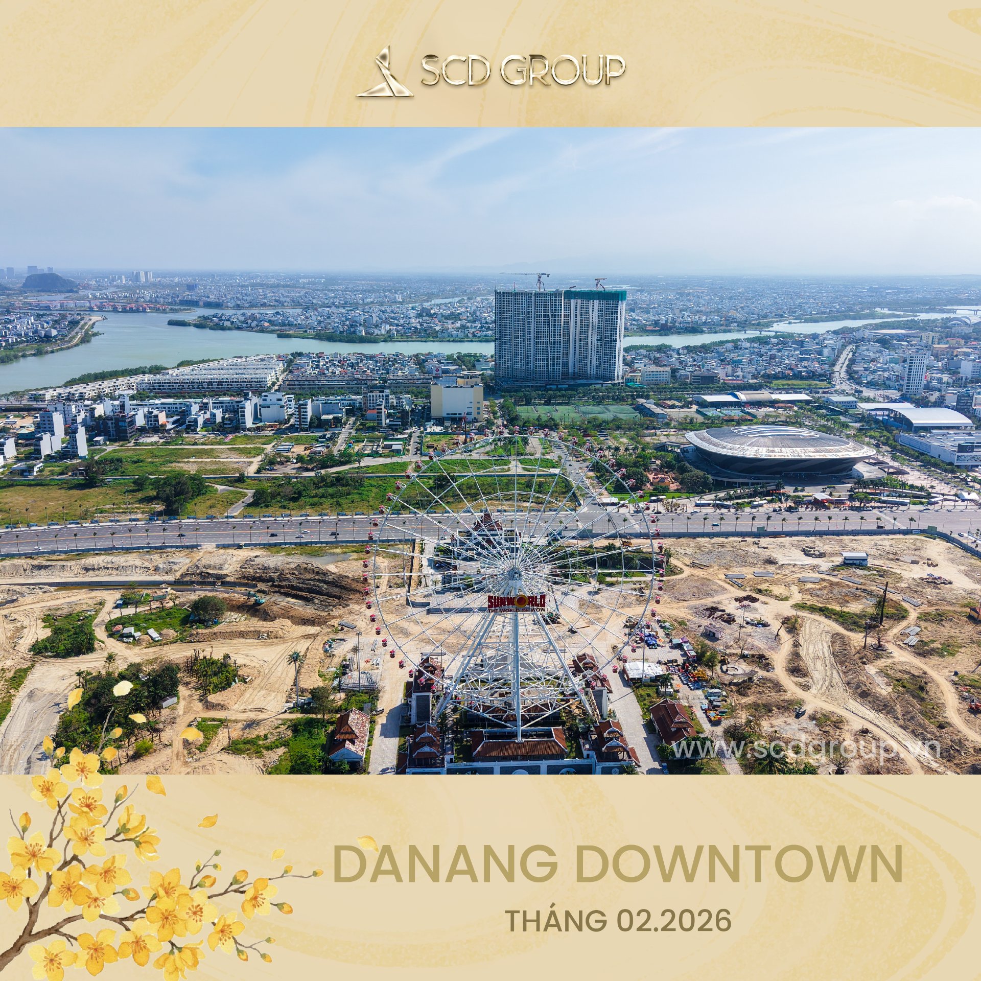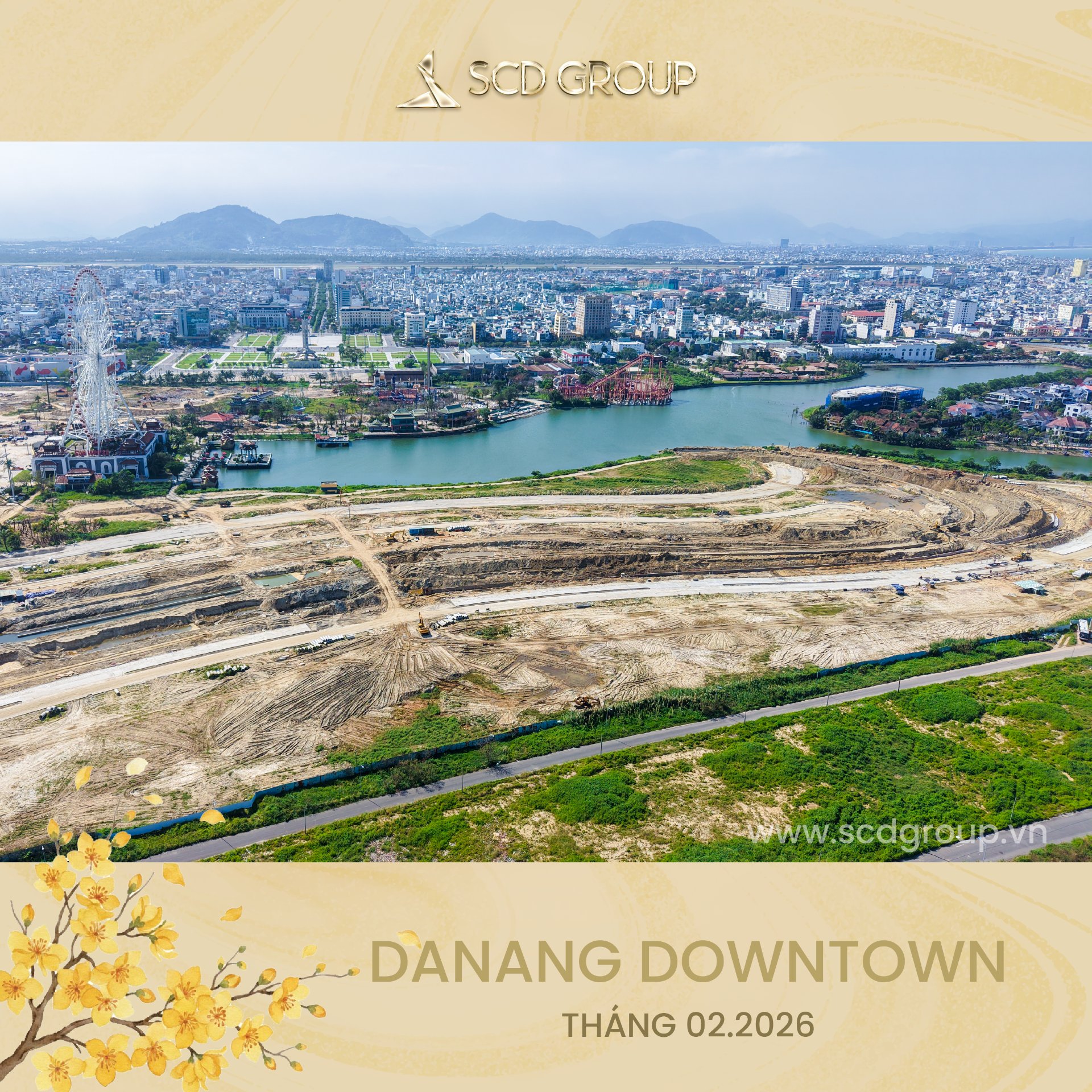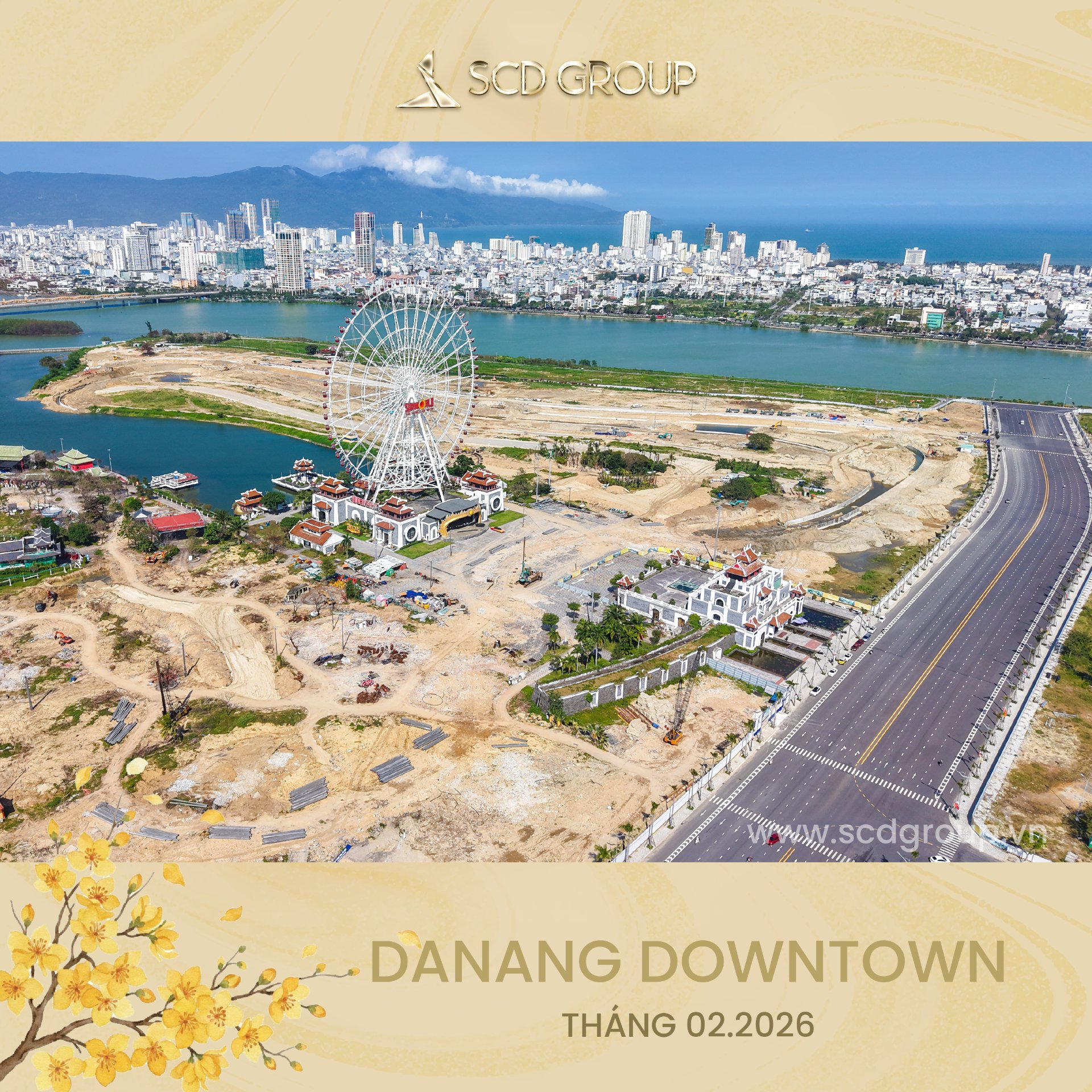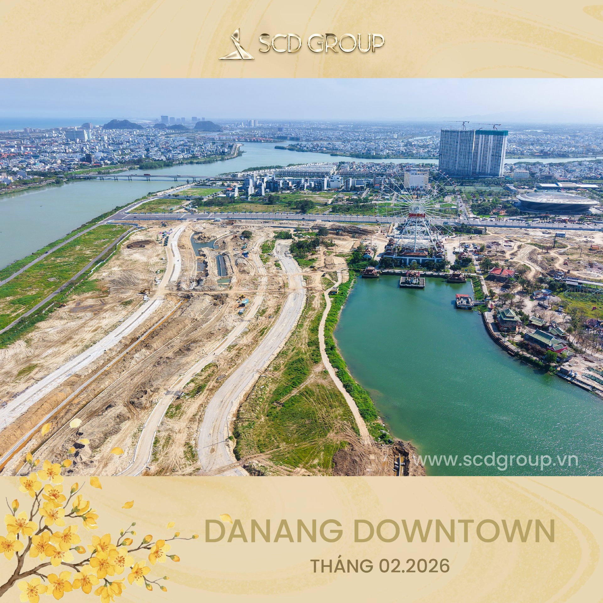 Siêu tổ hợp Da Nang Downtown quy mô 76,92ha, tọa lạc tại phường Hòa Cường (Công viên châu Á cũ), tổng mức đầu tư khoảng 79.790 tỷ đồng, gồm khu công viên văn hóa vui chơi giải trí, nhà hát, khu phố thương mại ven sông sầm uất, công viên xanh ôm trọn mặt nước sông Hàn và tòa tháp biểu tượng 69 tầng cao nhất miền Trung… Được ví như thành phố thu nhỏ giữa lòng “Thành phố sông Hàn” – Da Nang Downtown là nơi ánh đèn hội tụ, văn hóa thăng hoa và nhịp sống sôi động đêm ngày.